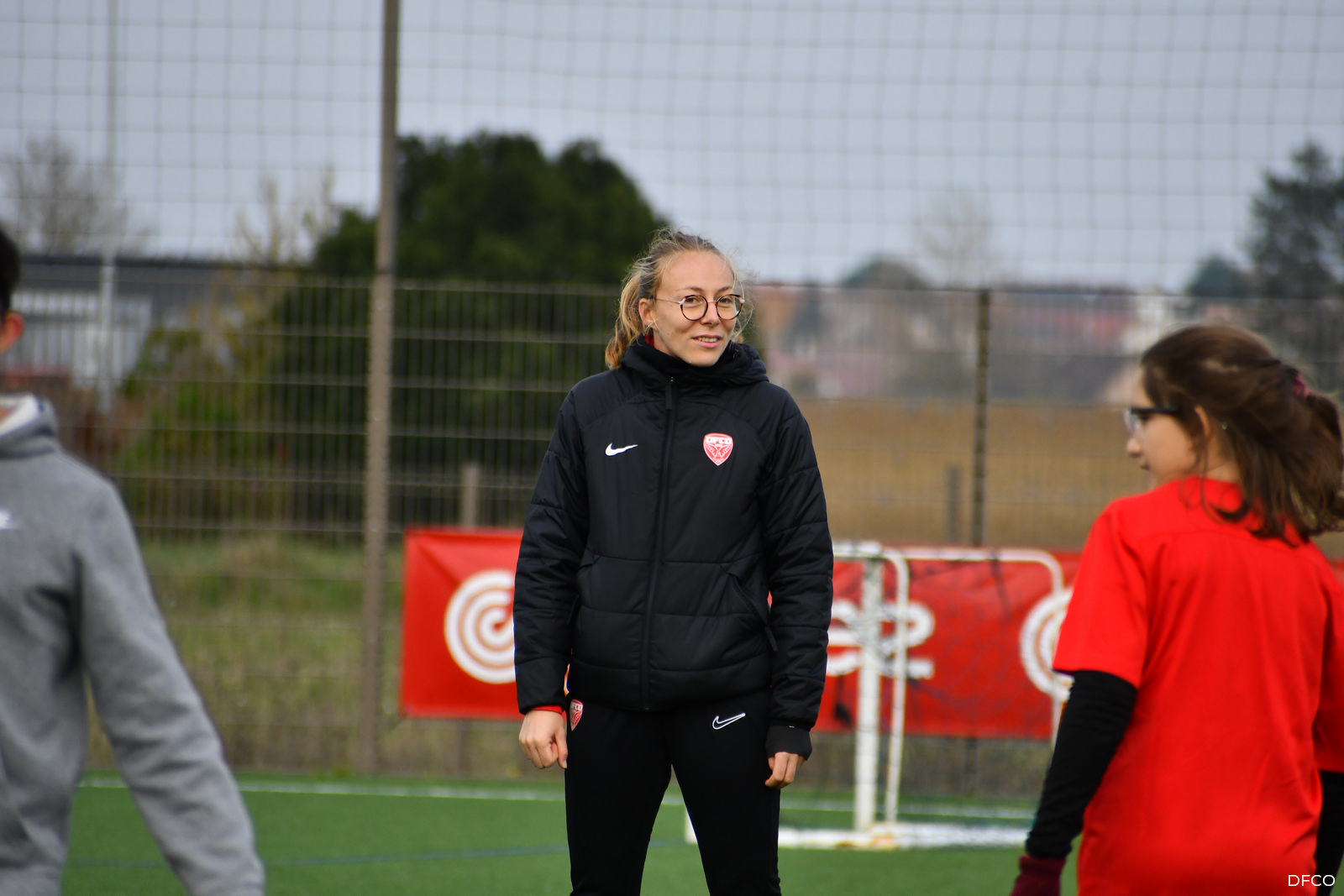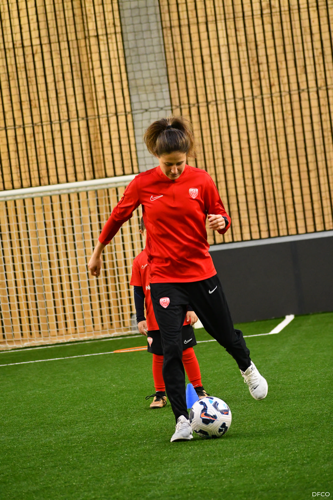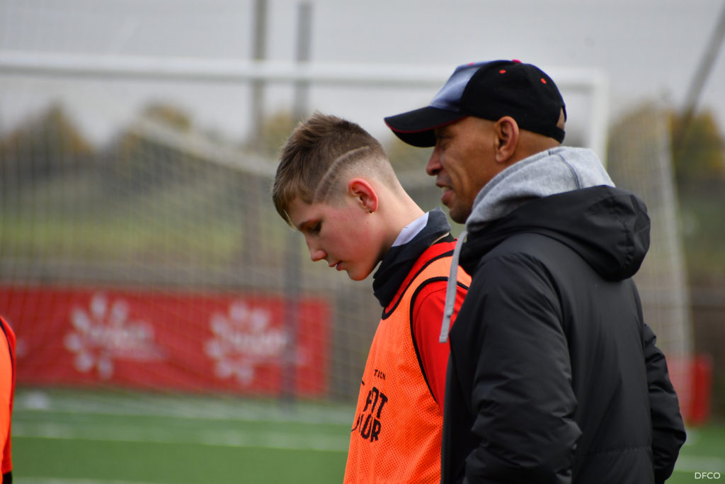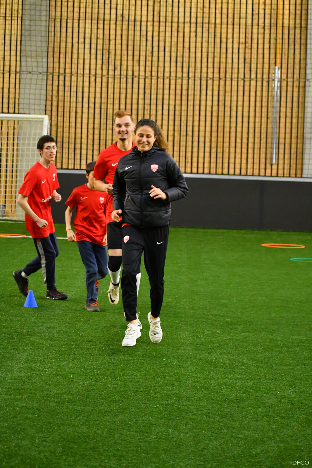 La jeune équipe a ensuite repris le chemin du terrain, pour une séance animée comme toujours par les joueuses professionnelles Léna Goetsch et Noémie Carage. Au programme : épervier avec et sans ballon pour se réchauffer, puis entraînement au Challenge mi-temps auquel les jeunes prendront part à la pause de la rencontre entre le DFCO et Montpellier le 7 décembre prochain dans le cadre de la semaine des Handicap’s.