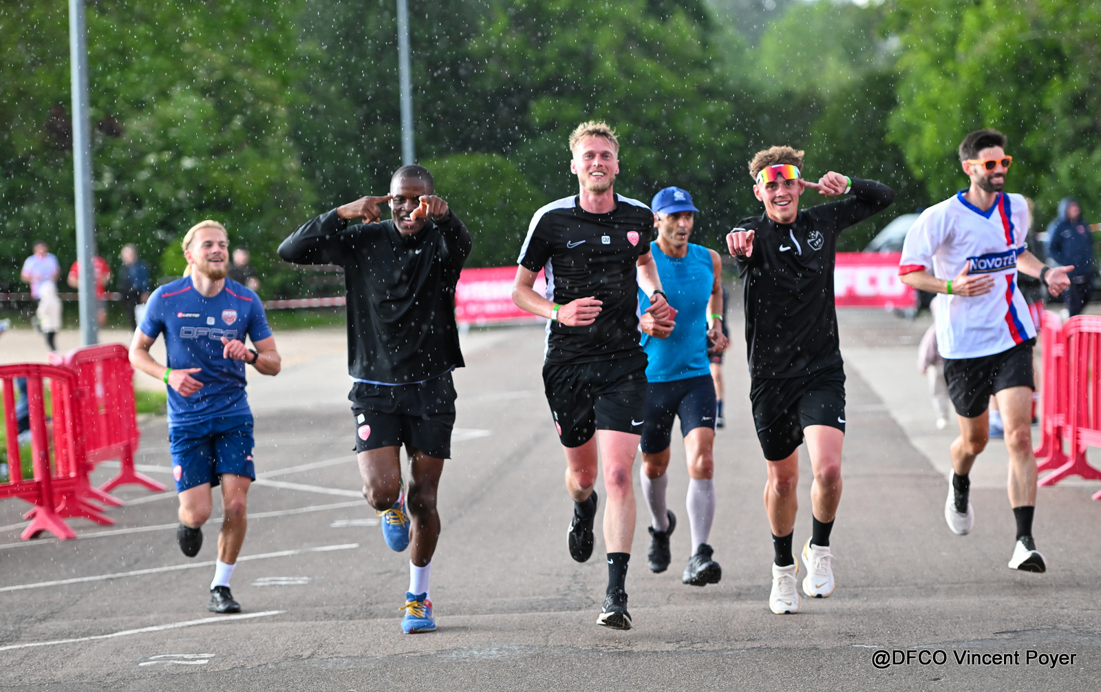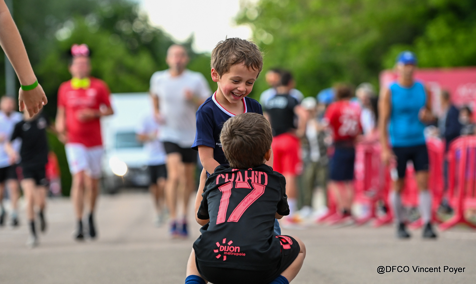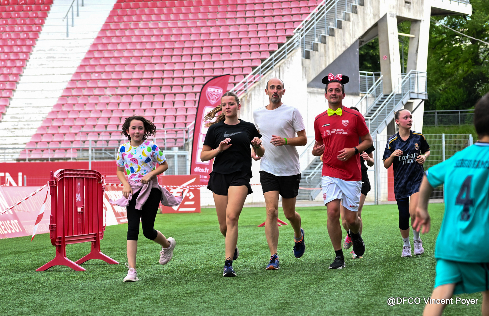 Ambitieux projet devenu événement, la DFCO FUN RACE a rassemblé plus de 500 personnes dont 285 coureurs tout au long de la journée au stade Gaston-Gérard ! Une première édition réussie avec de la sueur, des efforts, quelques grimaces, mais surtout énormément de sourires et de bonne humeur ! Plus de 4000 euros ont été récoltés en faveur de la Fondation Recherche Alzheimer et de l’association Courir Pour le Handicap et la Dépendance (CPHD).