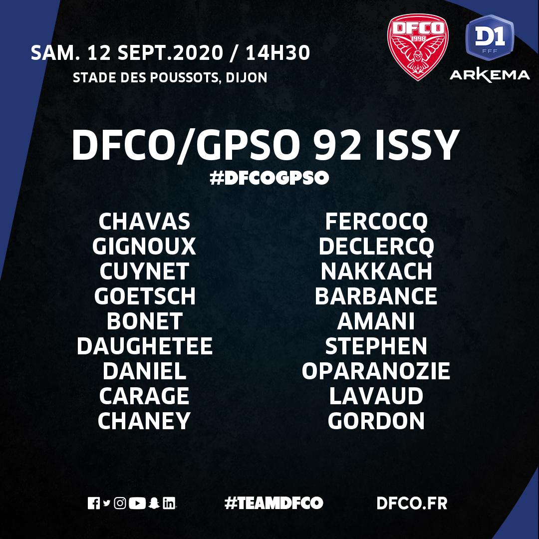 Pour le compte de la 2ème journée de D1 Arkema, le DFCO reçoit ce samedi (14h30) Issy au stade des Poussots. Yannick Chandioux et son staff ont convoqué un groupe de 18 joueuses.