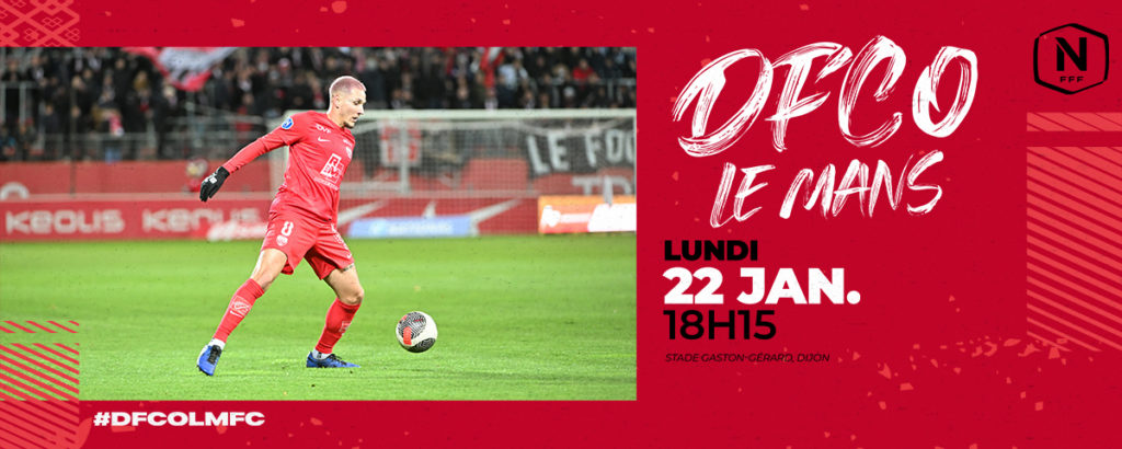 En National, le premier match de l’année 2024 au stade Gaston-Gérard se jouera le lundi 22 janvier (18h15) face au Mans ! Malgré un horaire inhabituel, soyez nombreux pour pousser les Rouges vers un premier succès à domicile ! Commandez vos places !