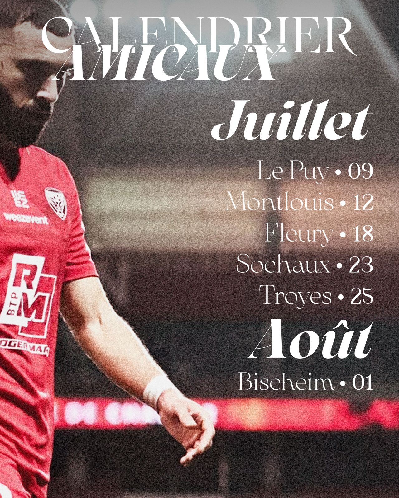 Actuellement en vacances, nos Dijonnais reprendront le chemin de l’entraînement le lundi 30 juin. Par la suite, ils disputeront plusieurs rencontres amicales. Découvrez le programme.