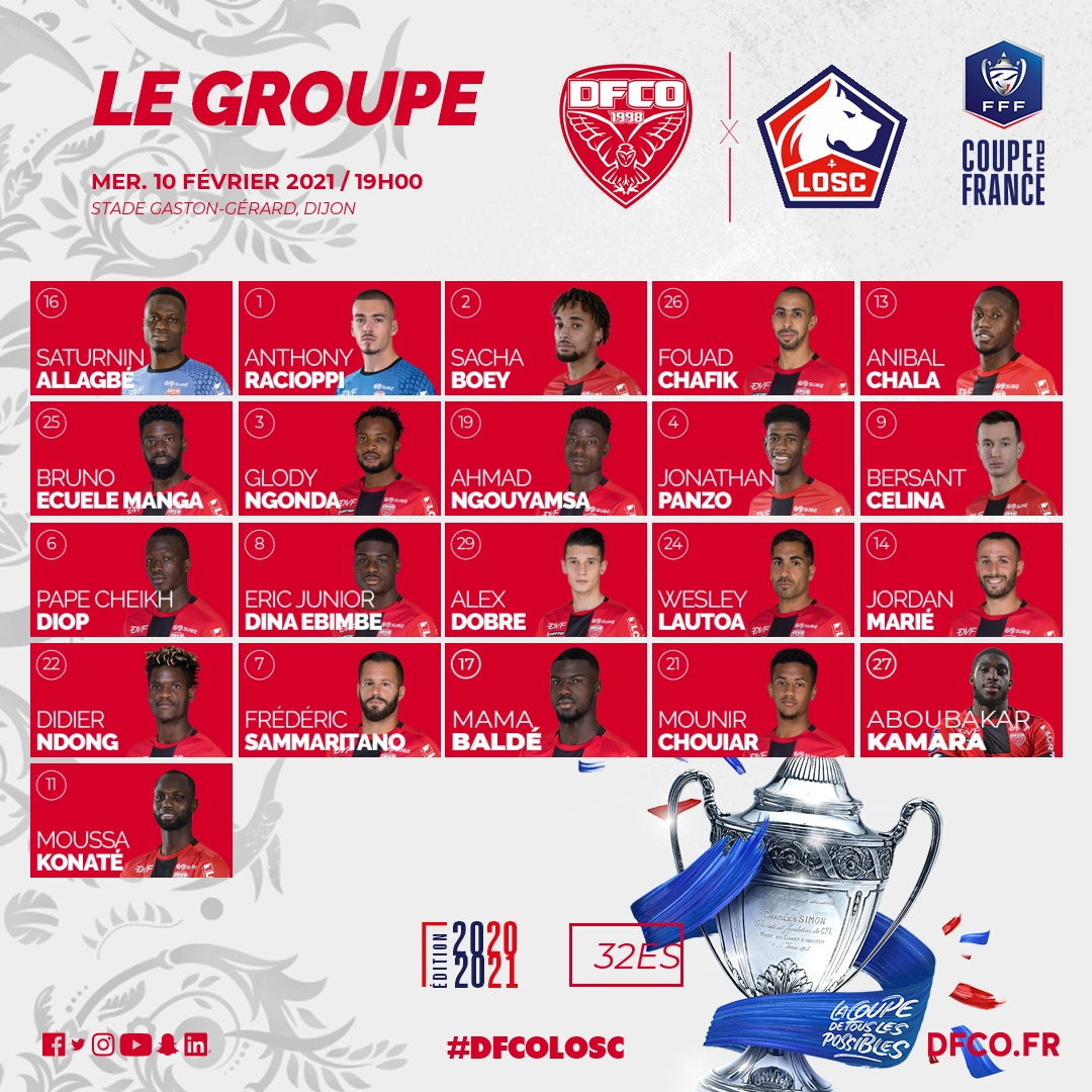 David Linarès et son staff ont convoqué un groupe de 21 joueurs pour la réception du LOSC ce mercredi (19h00), match comptant pour les 32es de finale de la coupe de France.