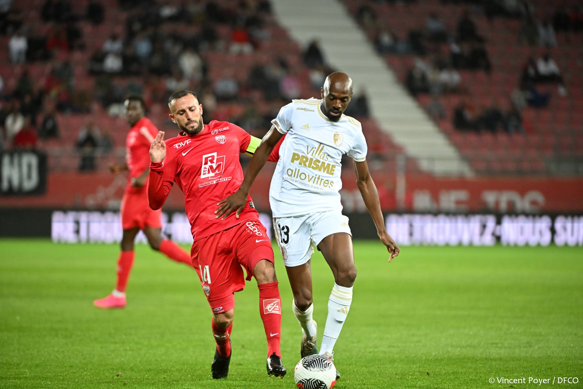 Avant cette série d’occasions de but, le DFCO n’aura malheureusement pas su se montrer suffisamment dangereux. La faute à une accumulation d’erreurs techniques, trop handicapantes pour développer un jeu fluide et efficace. Le DFCO n’aura, une fois de plus, pas pu compter sur le corps arbitral. Dès la 12e minute, un penalty pour une main de Diarra aurait dû être sifflée. Zakaria Fdaouch s’est également créé deux occasions coup sur coup. La première sur un centre de Kévin Schur où il expédie sa frappe au-dessus (38e), puis une seconde d’une tête plongeante, détournée dans le petit filet extérieur (40e). Des filets qui auront bien tremblé une fois ce soir… quand Joseph Mendes pensait avoir ouvert le score, en renard des surfaces suite à une tête de Rayan Souici (50e). Mais c’est un hors-jeu du milieu dijonnais qui mettra vite un terme à la joie de Gaston-Gérard.