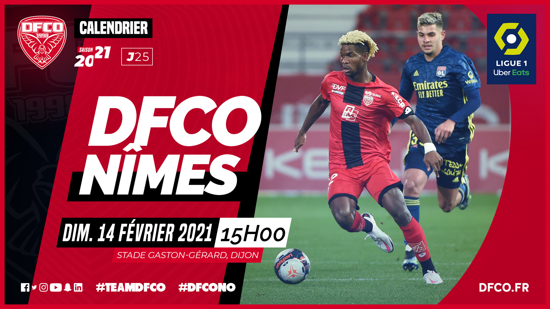 La programmation de la 25e journée de Ligue 1 Uber Eats a été dévoilée par la Ligue de Football Professionnel. Le DFCO affrontera le Nîmes Olympique le dimanche 14 février à 15h00. Ce match sera diffusé sur Canal + Sport (multiplex) et en intégralité sur Multisports.