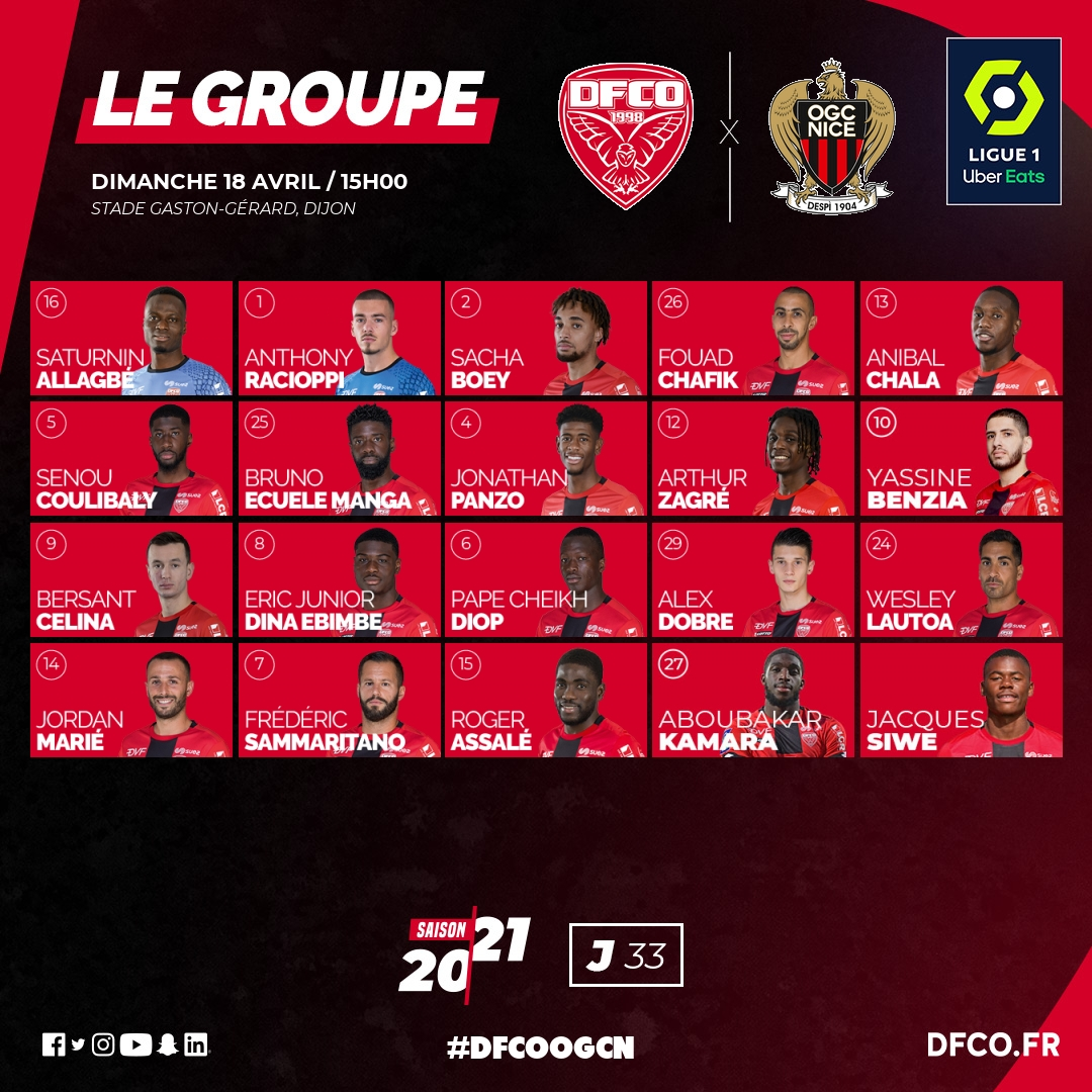 Pour affronter l'OGC Nice au stade Gaston-Gérard ce dimanche (15h00 / 33e journée de Ligue 1 Uber Eats), David Linarès et son staff ont convoqué un groupe de 20 joueurs.