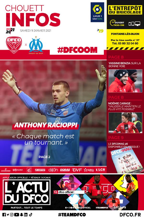 Cette saison, le DFCO a choisi de diffuser son programme de match Chouett"Infos en version numérique ! Pour tout savoir de l"avant-match de DFCO - OM, téléchargez le Chouett"Infos #10 ! Il est également disponible au centre du journal Le Bien Public ce samedi !