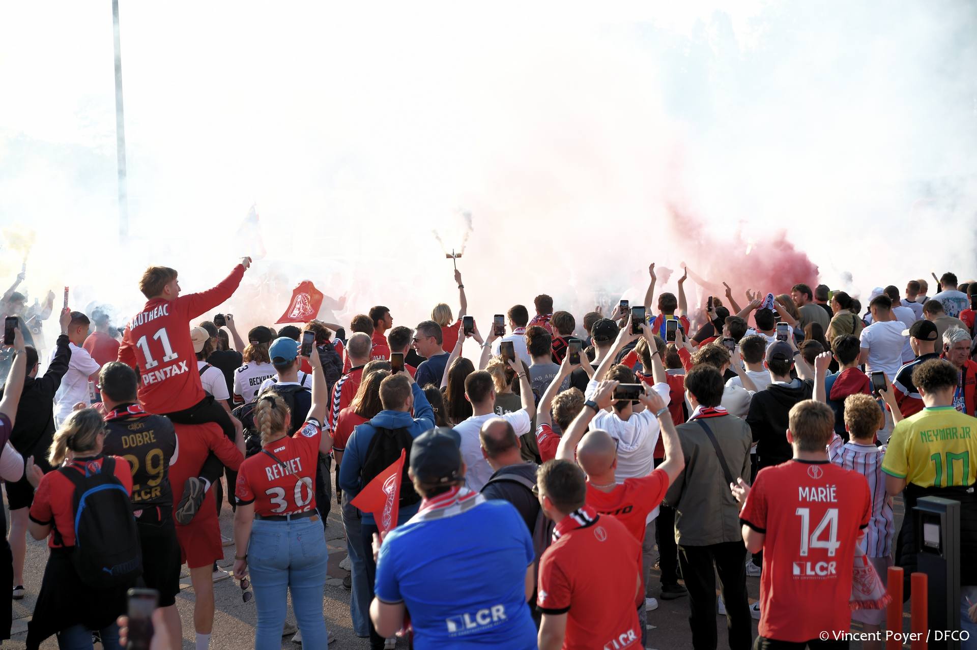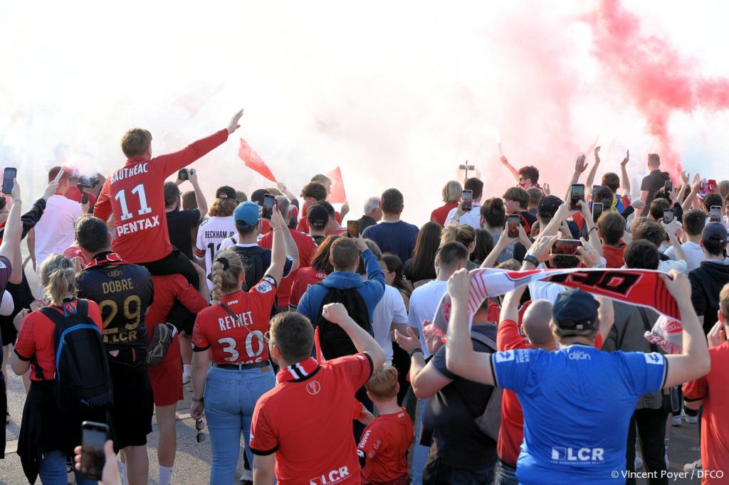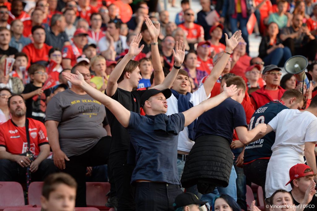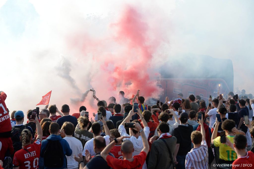 De l’accueil du bus des joueurs au traditionnel feu d’artifice du dernier match, ce fut une soirée haute en couleurs. Il n’a manqué que la victoire de nos Rouges face au Paris FC (1-1) pour que la fête soit complète. Vincent Poyer était au bord de la pelouse pour capturer les plus beaux moments de cette soirée.