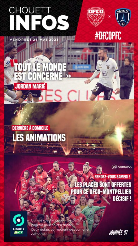 Pour tout savoir avant le match DFCO – Paris FC (37e journée de Ligue 2 BKT), voici un nouveau numéro de Chouett’Infos, votre programme de match !