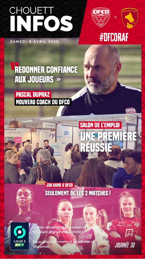 Pour tout savoir avant le match DFCO – Rodez (30e journée de Ligue 2 BKT), voici un nouveau numéro de Chouett’Infos, votre programme de match !