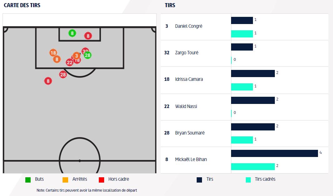- Mickaël Le Bihan est le Dijonnais qui a subi le plus de fautes (4), suivi de Walid Nassi (3).