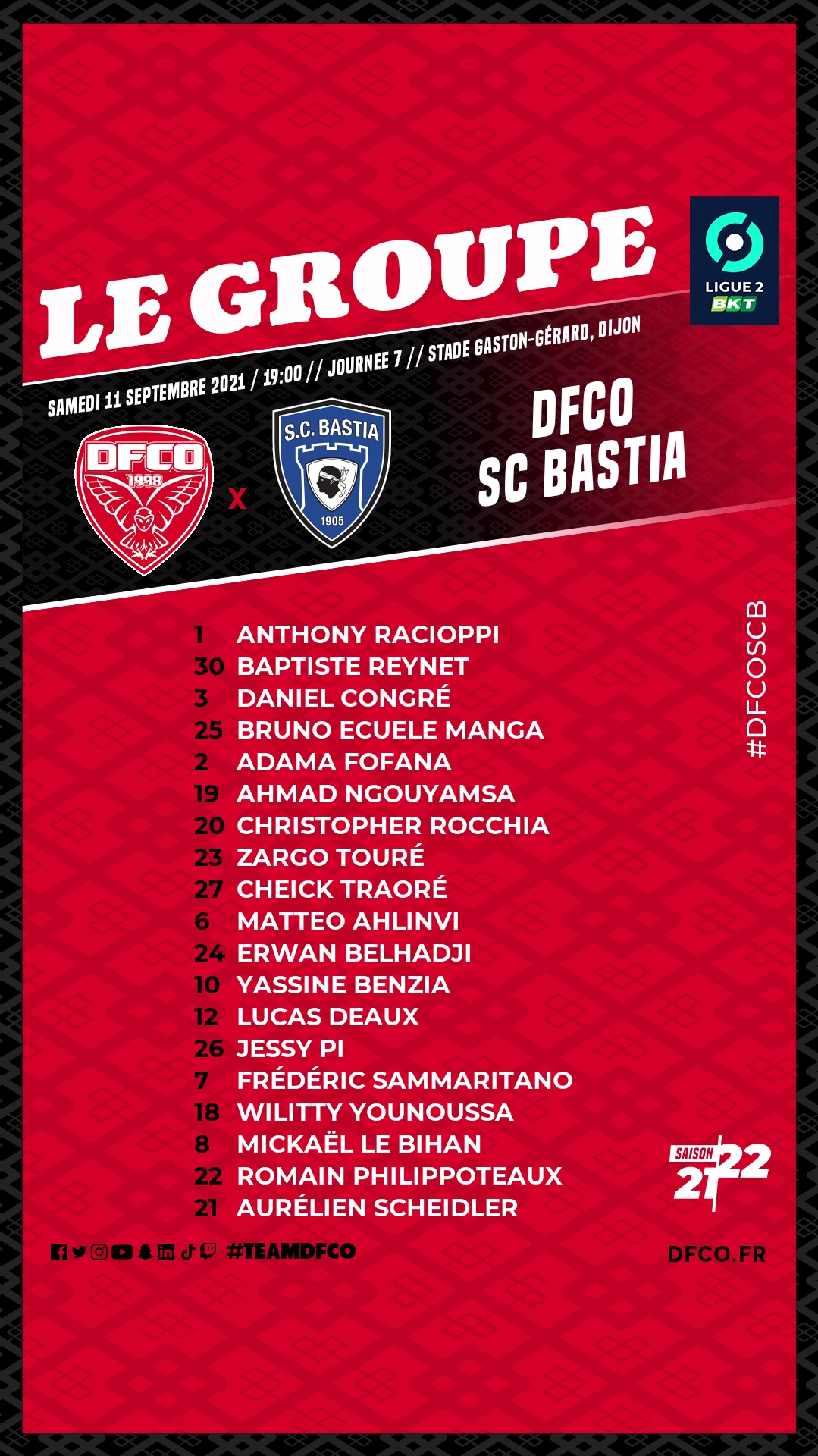Patrice Garande et son staff ont convoqué 19 joueurs pour la réception du Sporting Club de Bastia ce samedi (19h00) au Stade Gaston-Gérard (7e journée de Ligue 2 BKT).