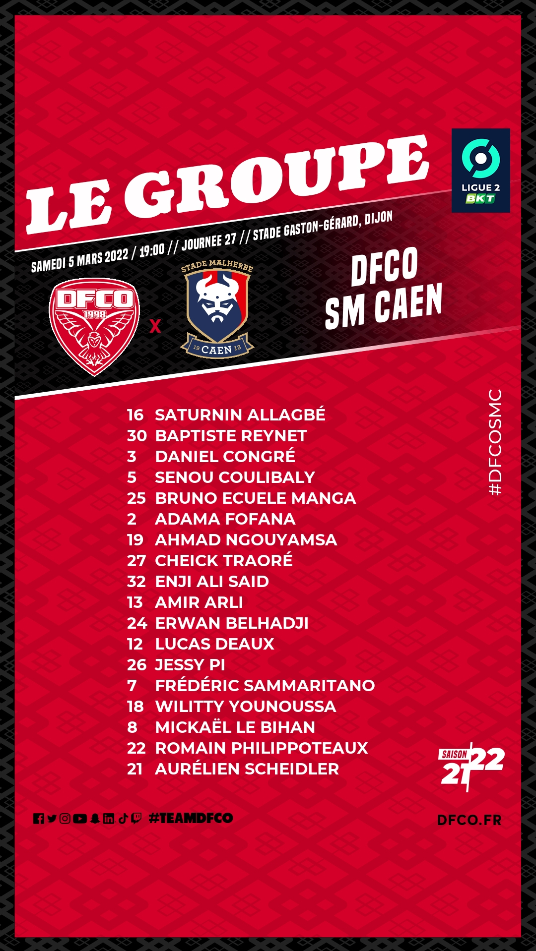 Patrice Garande et son staff ont convoqué un groupe de 18 joueurs pour affronter le Stade Malherbe de Caen samedi (19h00) au stade Gaston-Gérard (27e journée de Ligue 2 BKT).