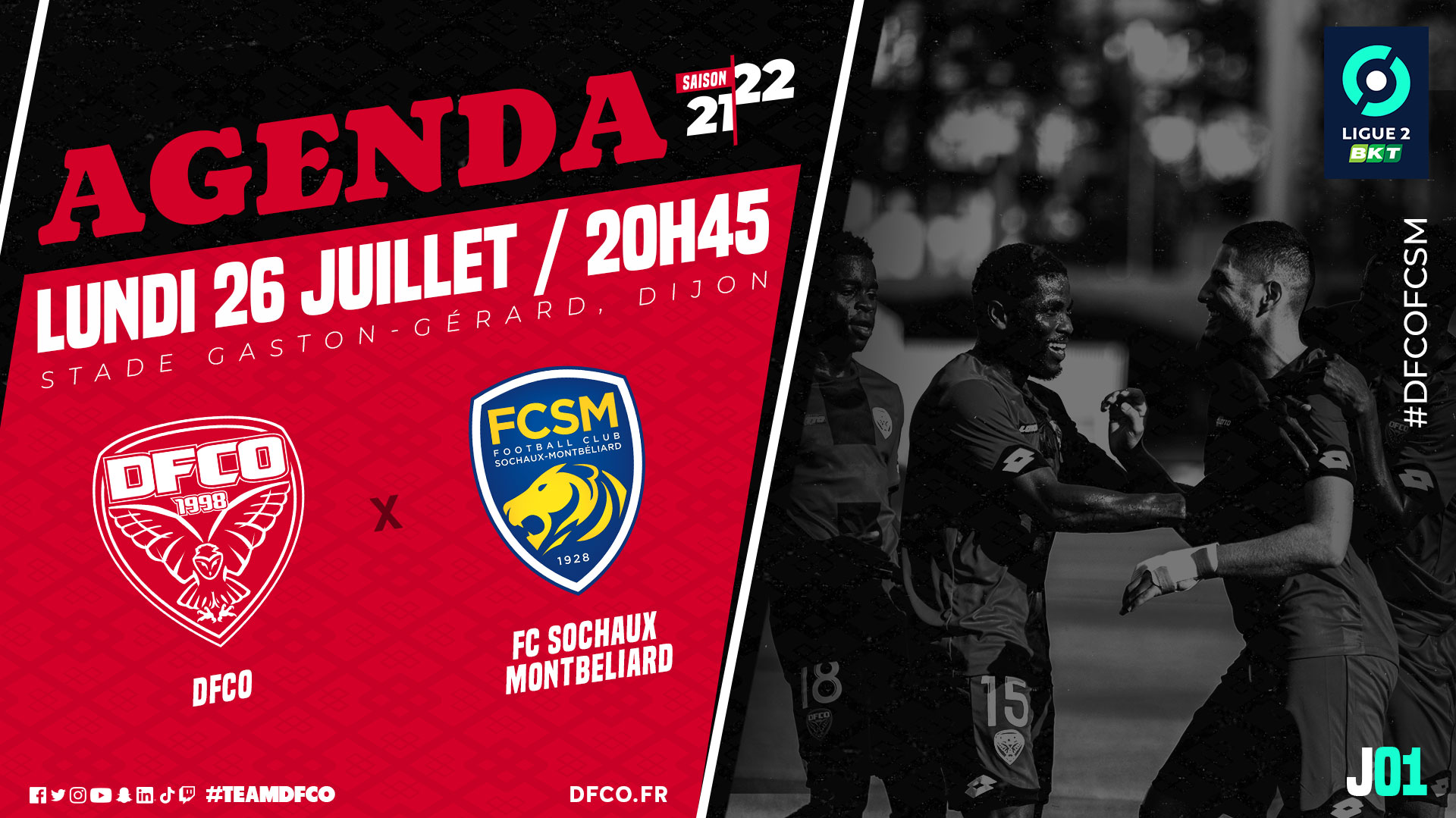 Le lundi 26 juillet (20h45) le DFCO débutera le championnat en recevant le FC Sochaux Montbéliard (1ère journée de Ligue 2 BKT) ! Une première grosse affiche à Gaston Gérard, on compte sur votre soutien !