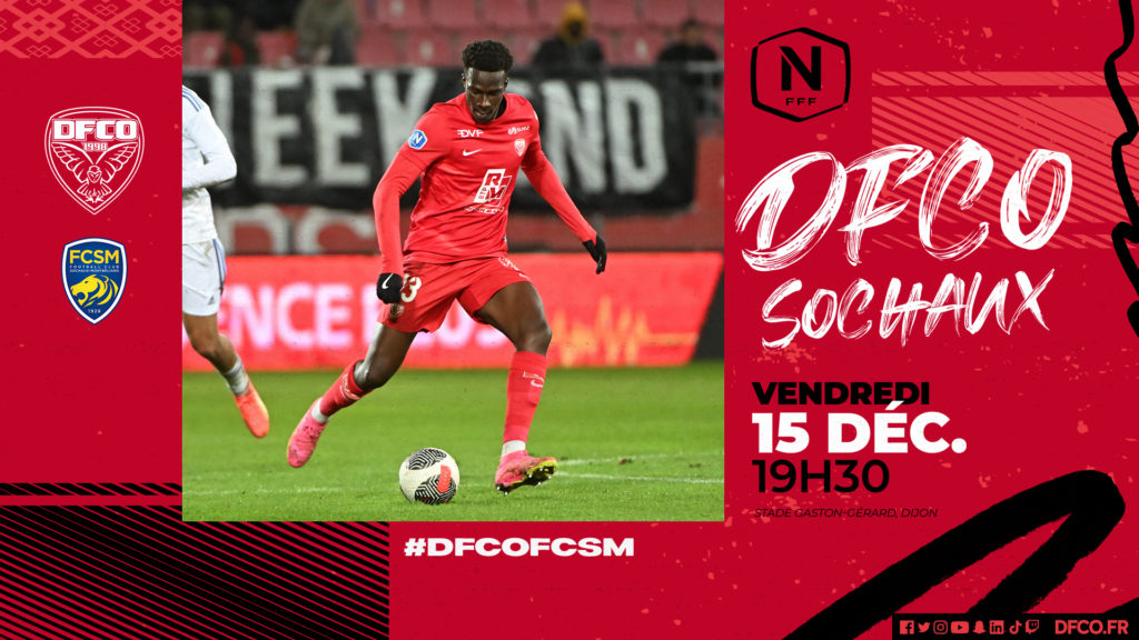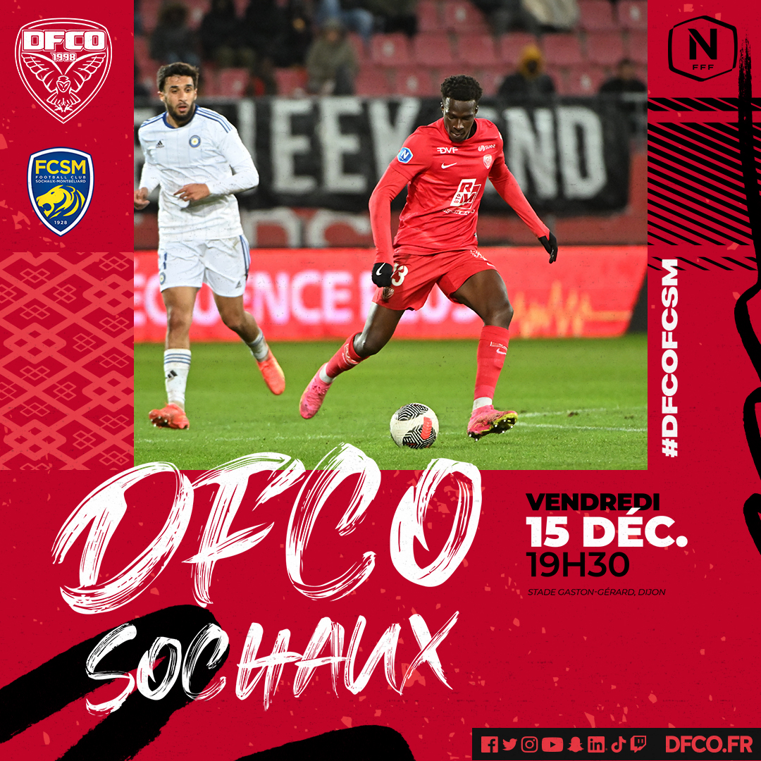 C’est LE choc de la 16e journée du championnat de France de National ! Le DFCO reçoit le FC Sochaux-Montbéliard au stade Gaston-Gérard vendredi 15 décembre (19h30) pour le dernier match de l’année 2023. Soyez au rendez-vous !
