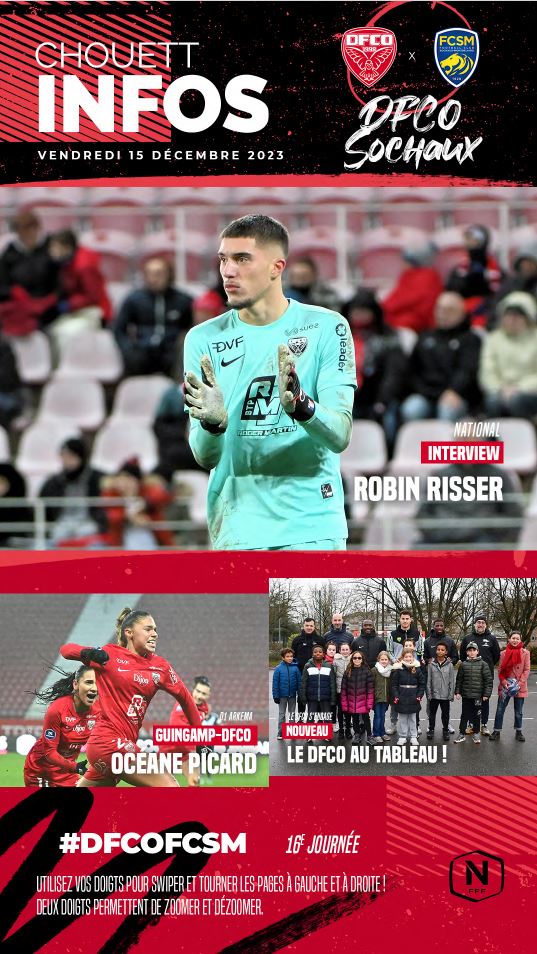 Pour tout savoir avant le match DFCO – Sochaux (16e journée de National), voici un nouveau numéro de Chouett’Infos, votre programme de match !