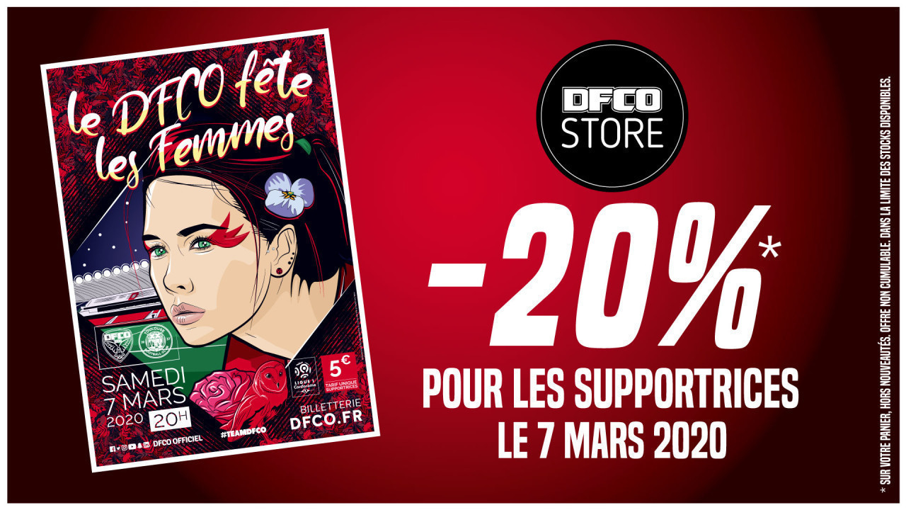 A cette occasion, le DFCO Store propose une offre spéciale à toutes les supportrices : - 20 %*