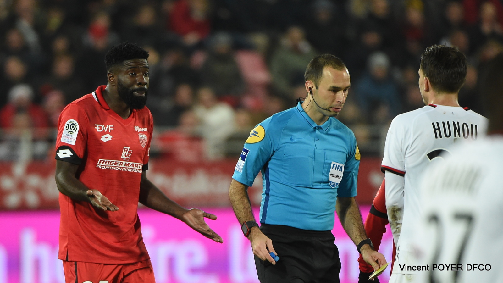 Jérôme Brisard n"a jamais arbitré le DFCO cette saison, mais il avait officié deux matchs à Gaston-Gérard la saison passée. Deux victoires face au Stade Rennais (2-1) et Toulouse (2-1).