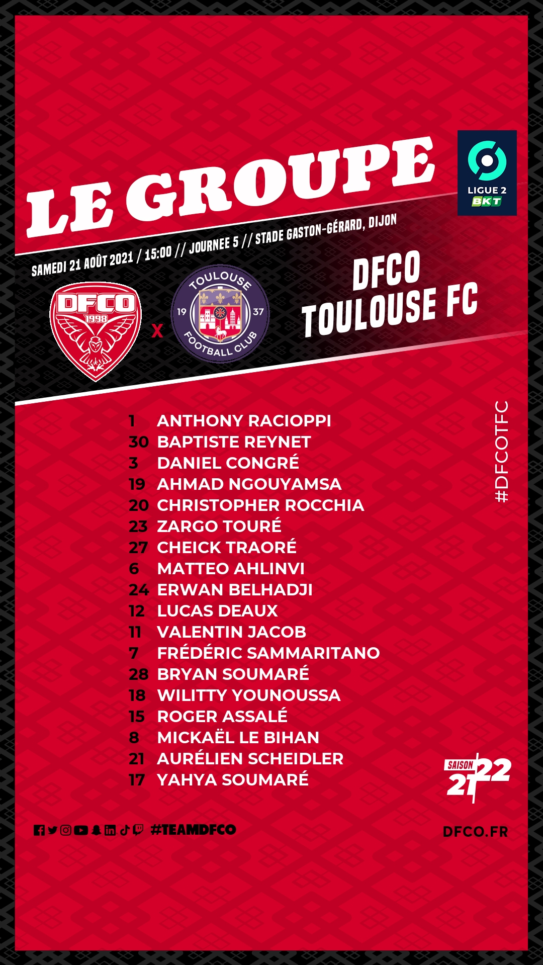 DFCO – Toulouse FC : le groupe dijonnais