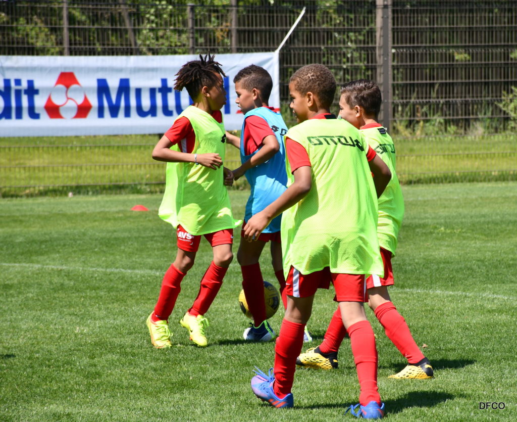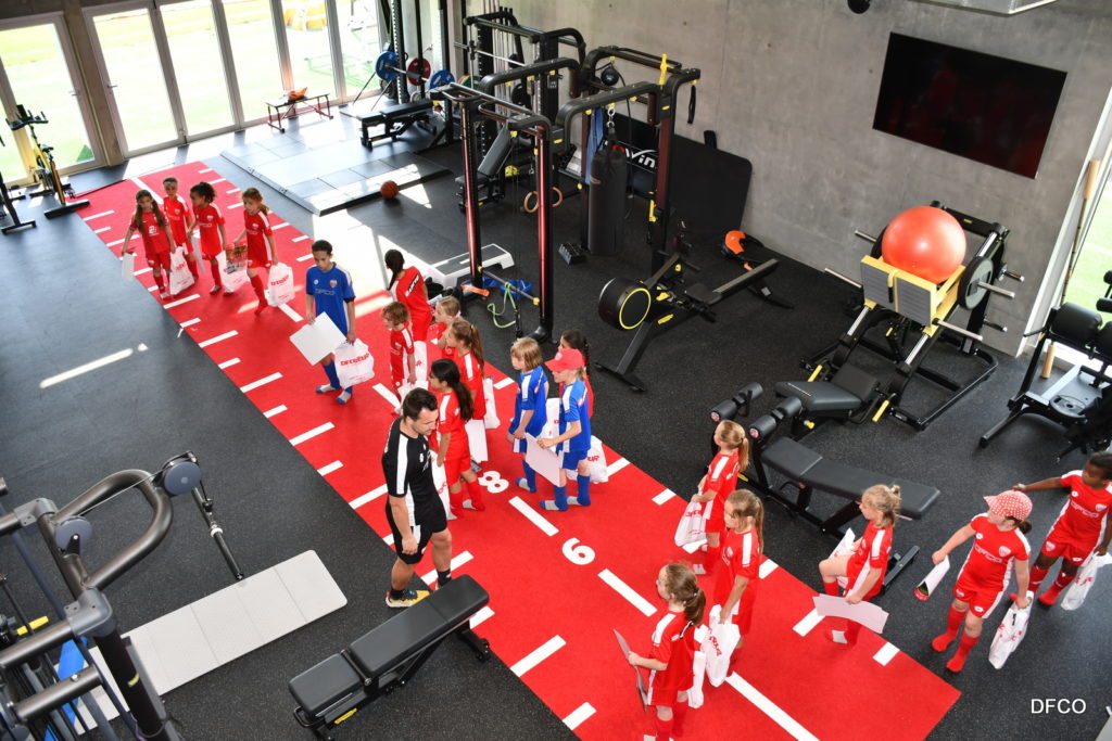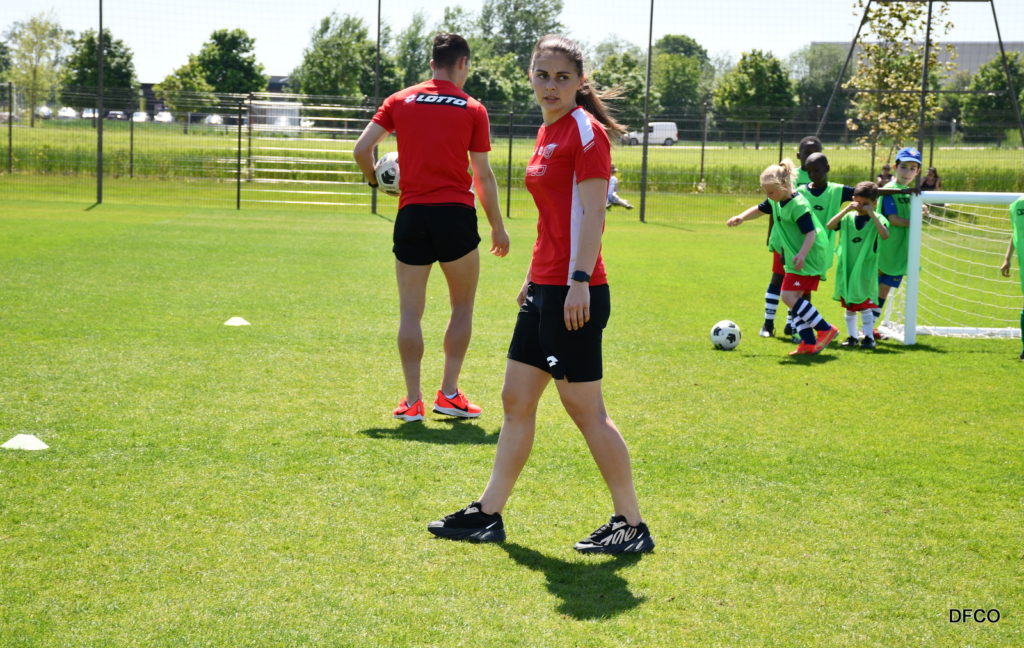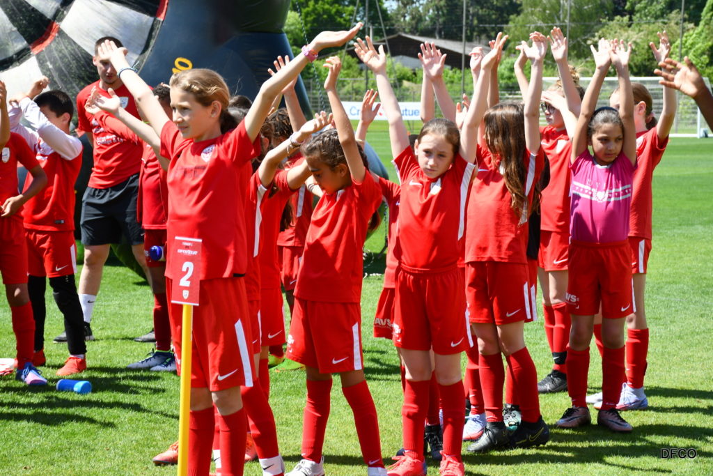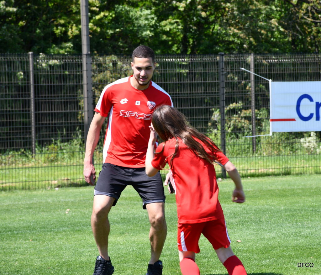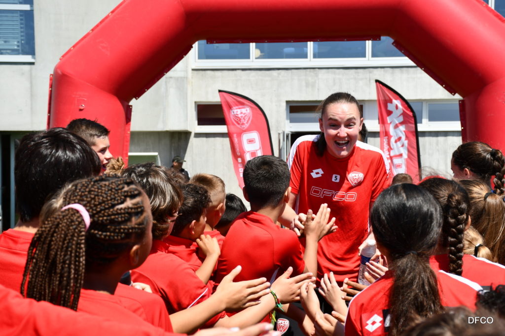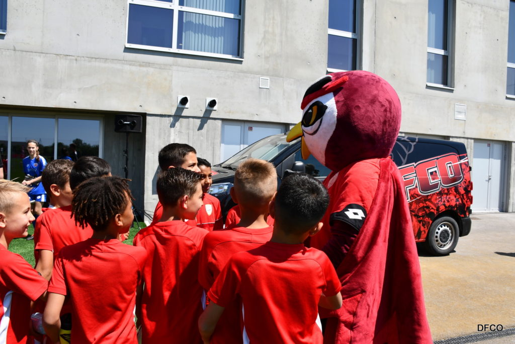 Après avoir acclamé les joueuses et joueurs, chaque groupe d’enfants a fait connaissance avec sa marraine et/ou son parrain et a participé à des ateliers concoctés par les éducateurs du DFCO.