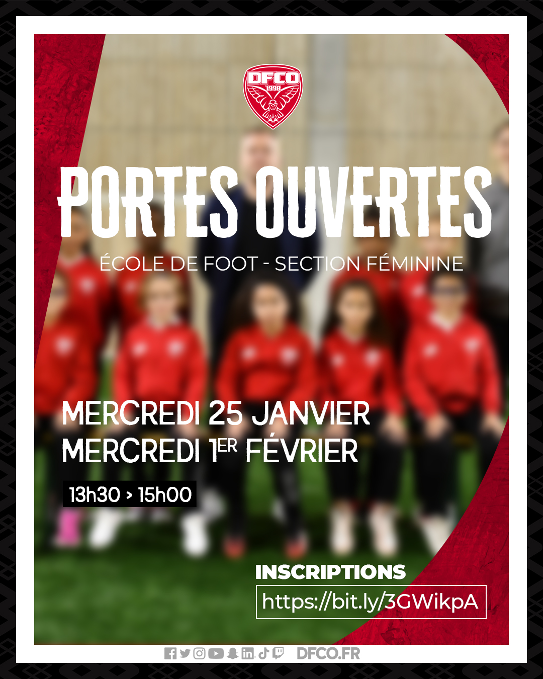 Deux journée portes ouvertes sont organisées les mercredi 25 janvier et 1er février de 13h30 à 15h00 pour les jeunes filles nées en 2013, 2014, 2015, 2016 qui souhaitent découvrir notre club.