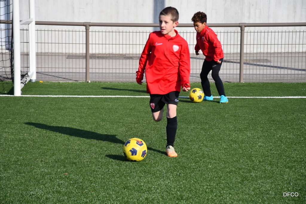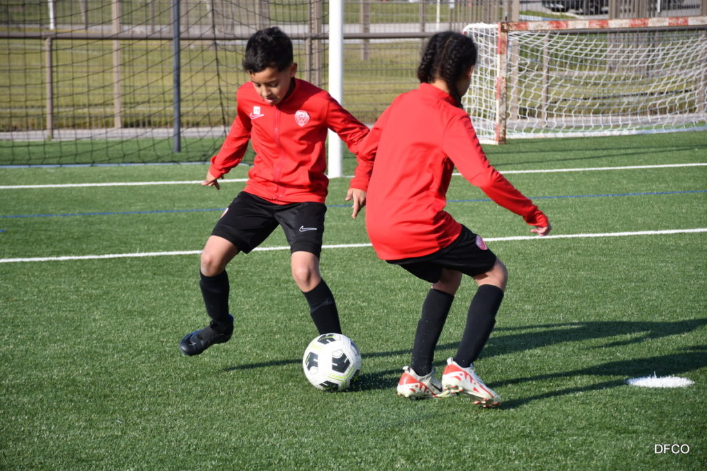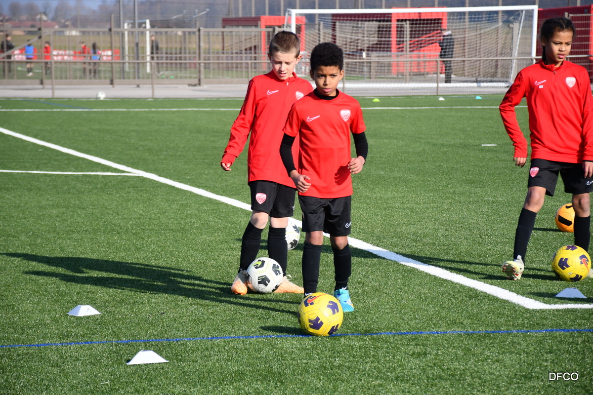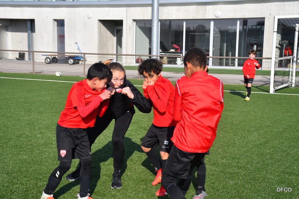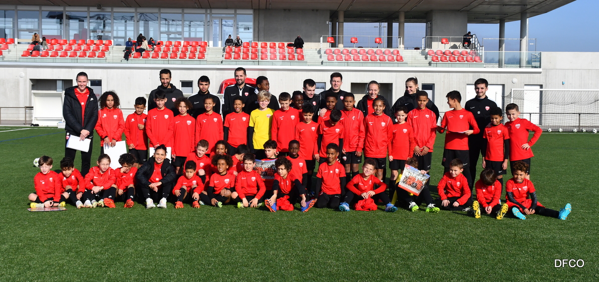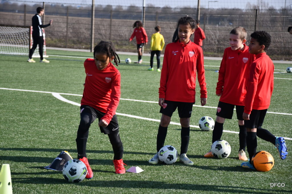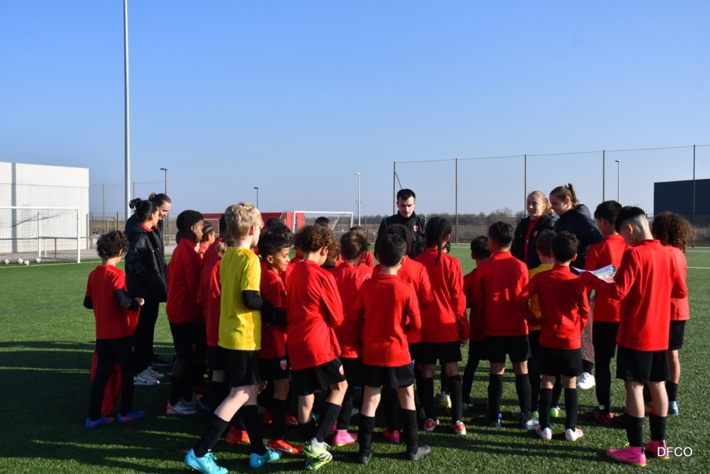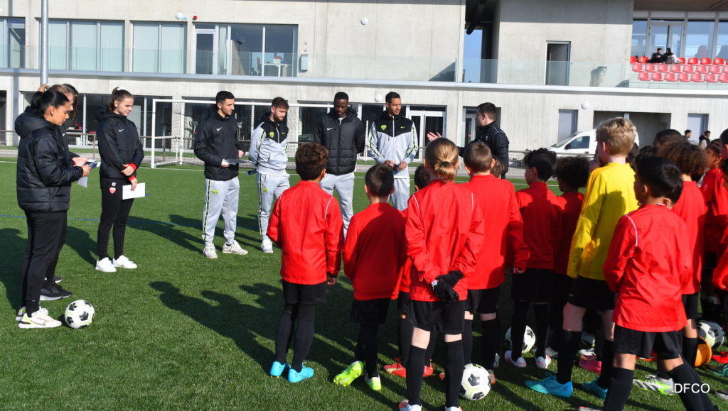 Ce mercredi après-midi, l’école de foot du DFCO a vu quatre joueurs et quatre joueuses professionnels participer à leur entraînement.