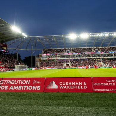 Votre marque sur un support double-face visible par tous les spectateurs du stade.