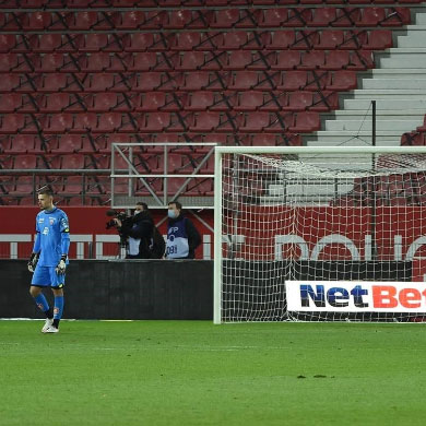 Une paire de panneaux fixes juste derrière les buts (champ TV).