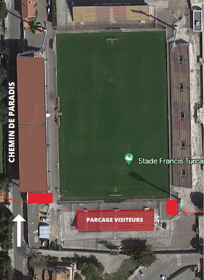 ATTENTION : merci de prévoir de payer en espèces, le paiement par carte bancaire ne sera pas proposé (5 euros la place). L’accès à la tribune visiteurs s’effectue du côté de l’avenue Louis Sammut (proche de l’hôtel Ibis).