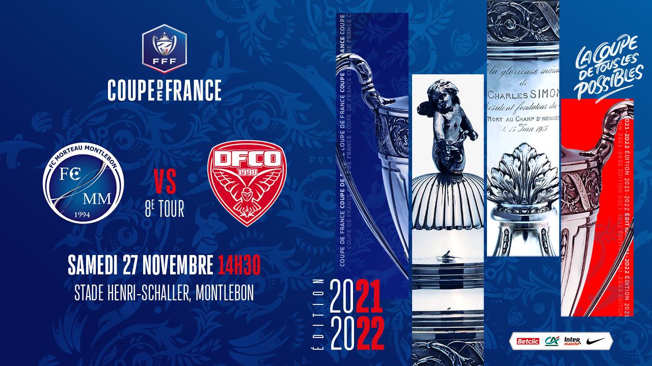 Le huitième tour de Coupe de France entre le FC Morteau/Montlebon et le DFCO se jouera le samedi 27 novembre (14h30) au stade Henri-Schaller à Montlebon.