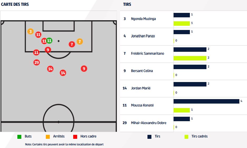 - La partie aura été rythmée, notamment en fin de seconde période où le ballon allait d'un but à l'autre et où les opportunités de marquer auront été multiples. Nantes a tenté 16 frappes dont 6 cadrées, le DFCO 13 dont 4 cadrées.