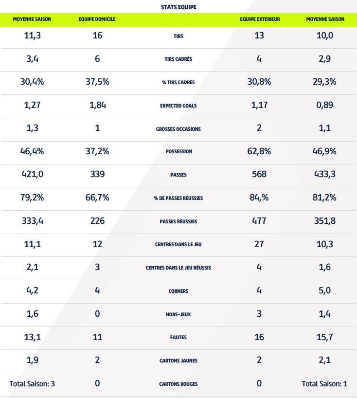 - Avec 84 % de passes réussies, le DFCO a également terminé au-dessus de sa moyenne (81,2 %). Dans ce domaine, le FC Nantes a failli avec seulement 66,7 % de réussite.