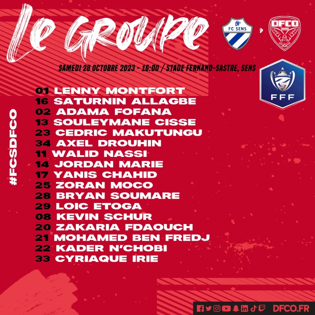 Pour affronter le FC Sens au 6e tour de Coupe de France, Benoît Tavenot et son staff ont fait appel à un groupe de 17 joueurs.