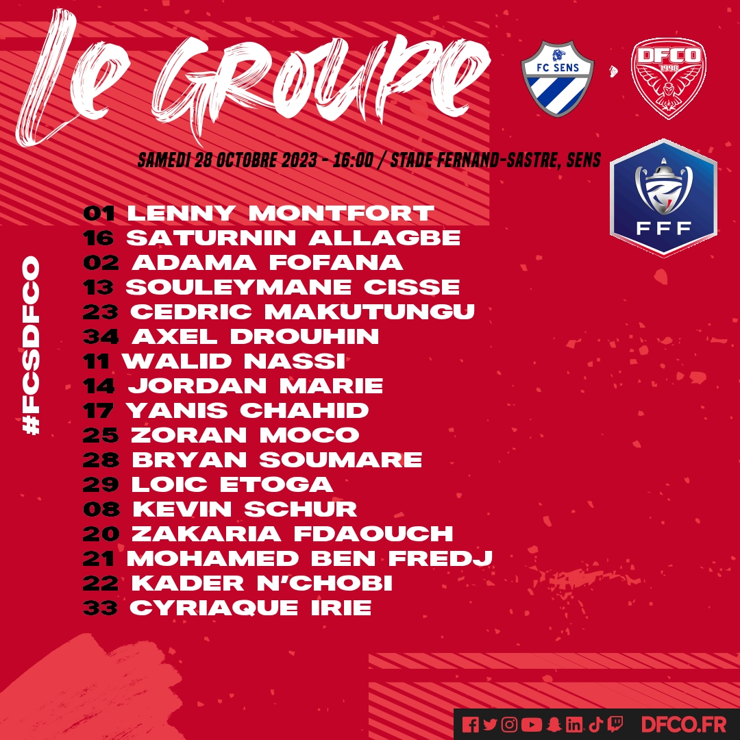 Pour affronter le FC Sens au 6e tour de Coupe de France, Benoît Tavenot et son staff ont fait appel à un groupe de 17 joueurs.