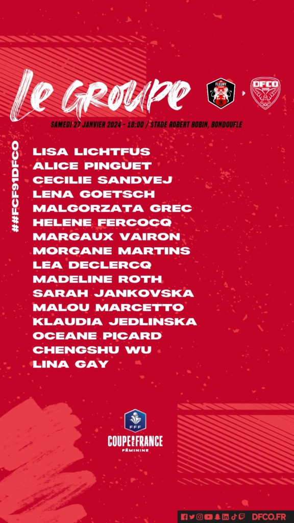 Dans le cadre des 8èmes de finale de la Coupe de France Féminine, le DFCO se déplace samedi (18h) au Stade Robert Bobin de Bondoufle pour y affronter Fleury.