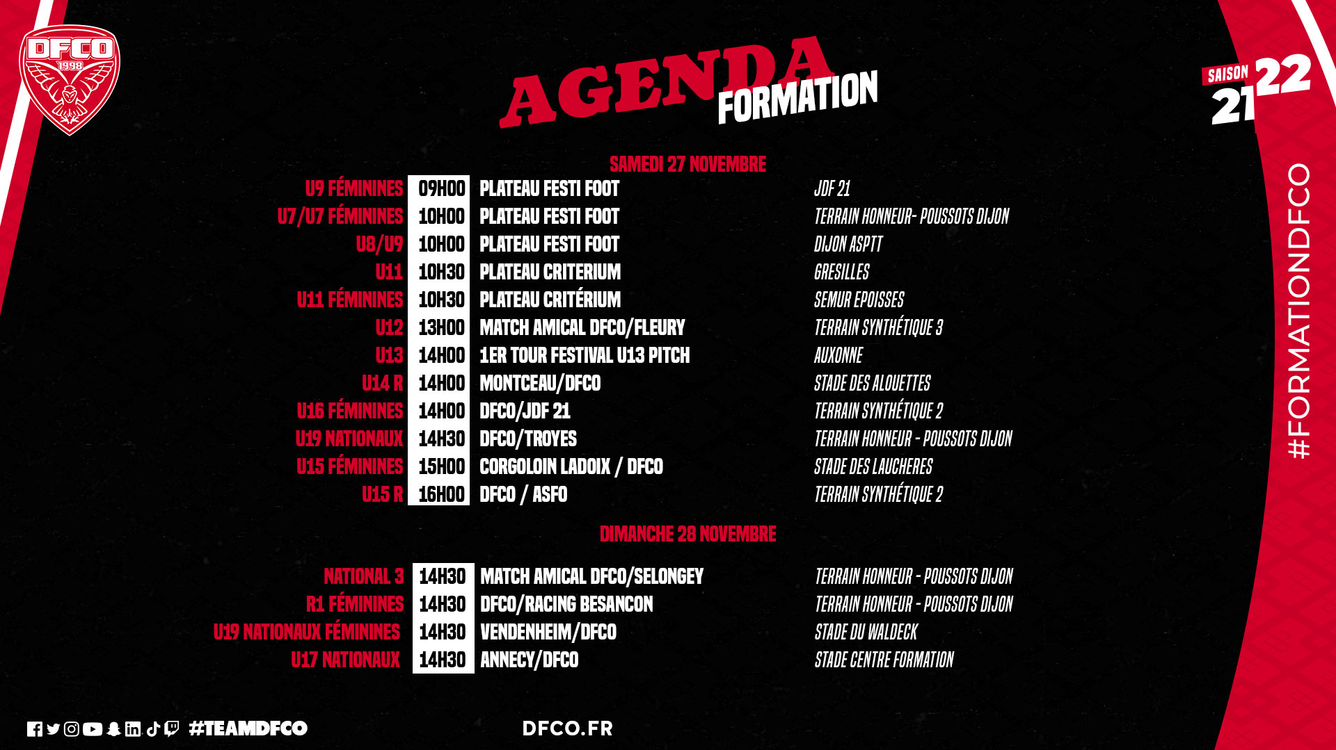 Retrouvez le planning des équipes de la formation DFCO et des féminines pour ce week-end.