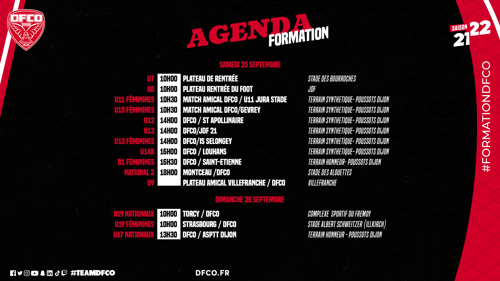 Retrouvez le planning du week-end des équipes de la formation et des féminines.
