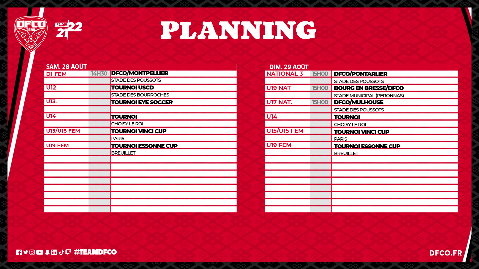 Retrouvez le planning des équipes de la formation et des féminines pour ce week-end.