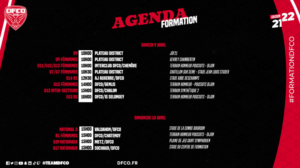 Retrouvez le planning du week-end des équipes de la formation et des féminines.