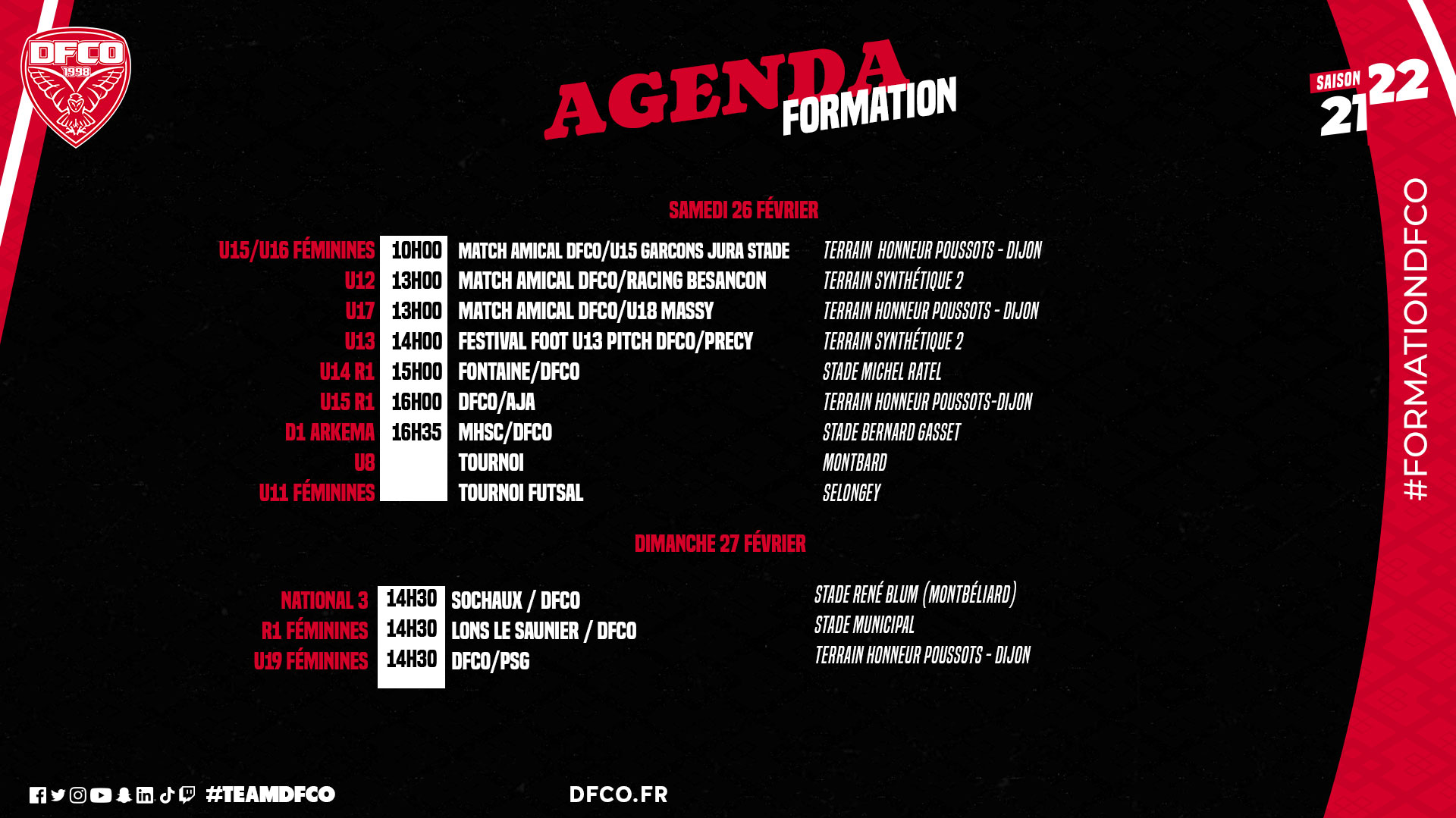 Retrouvez le planning du week-end des équipes de l’association DFCO et des féminines pour le week-end prochain.