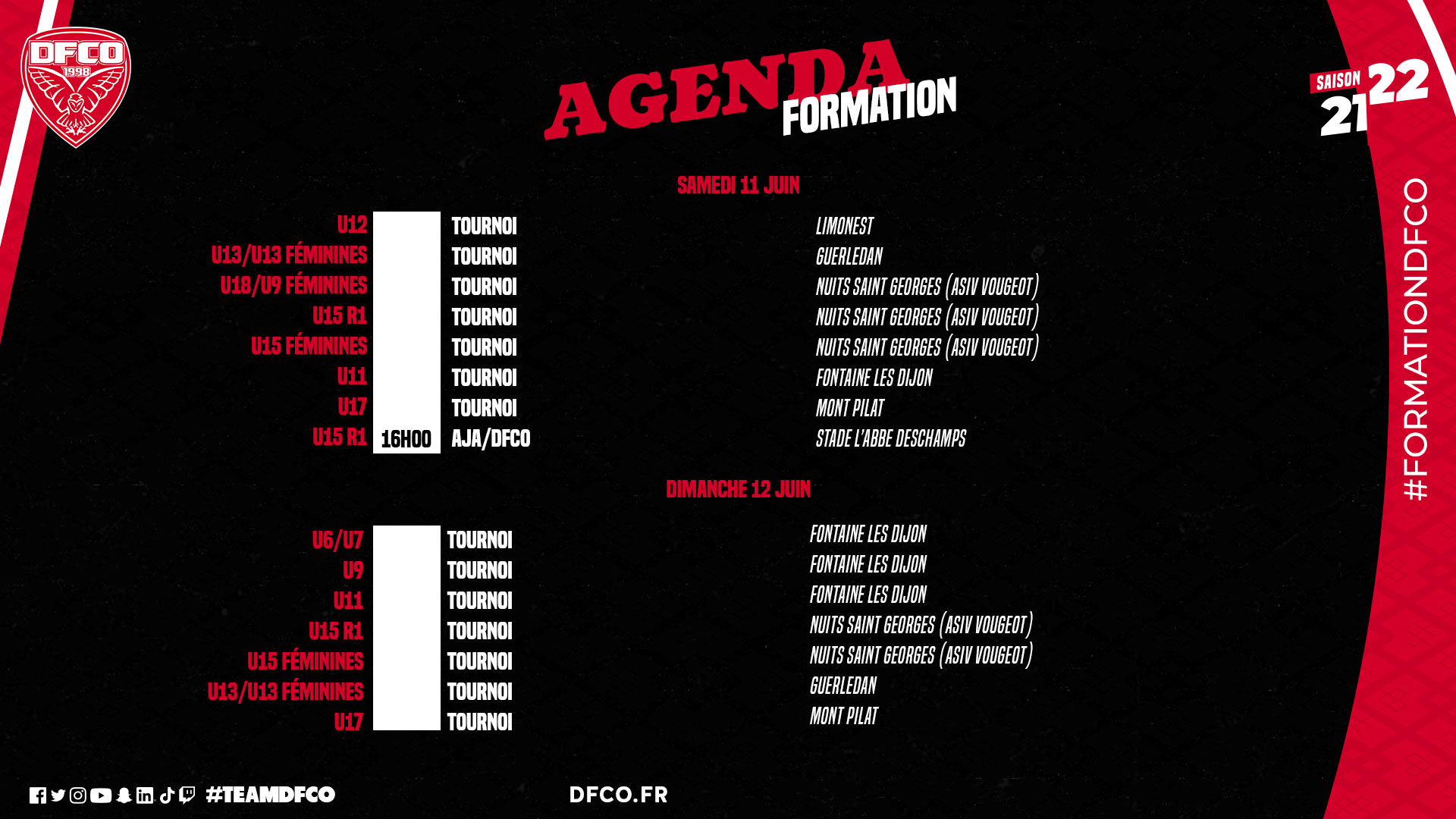 Retrouvez le planning du week-end pour les équipes de la formation et des féminines. Nos jeunes joueurs seront en lice dans plusieurs tournois, tandis que nos U15, déjà champions, iront affronter l’AJ Auxerre pour la dernière journée de leur championnat.