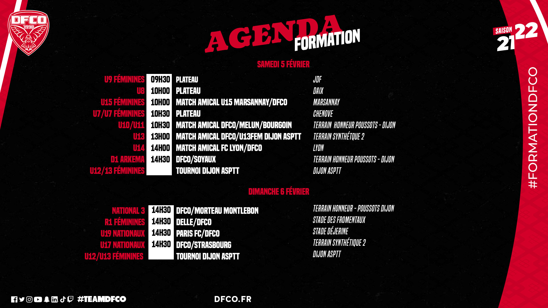 Retrouvez le planning des équipes de la formation DFCO et des féminines pour ce week-end.