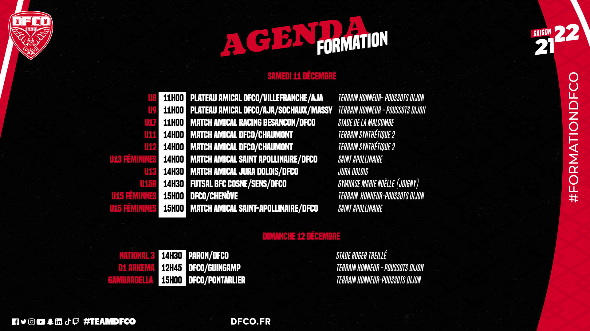 Retrouvez le planning des équipes de la formation DFCO et des féminines pour ce week-end.