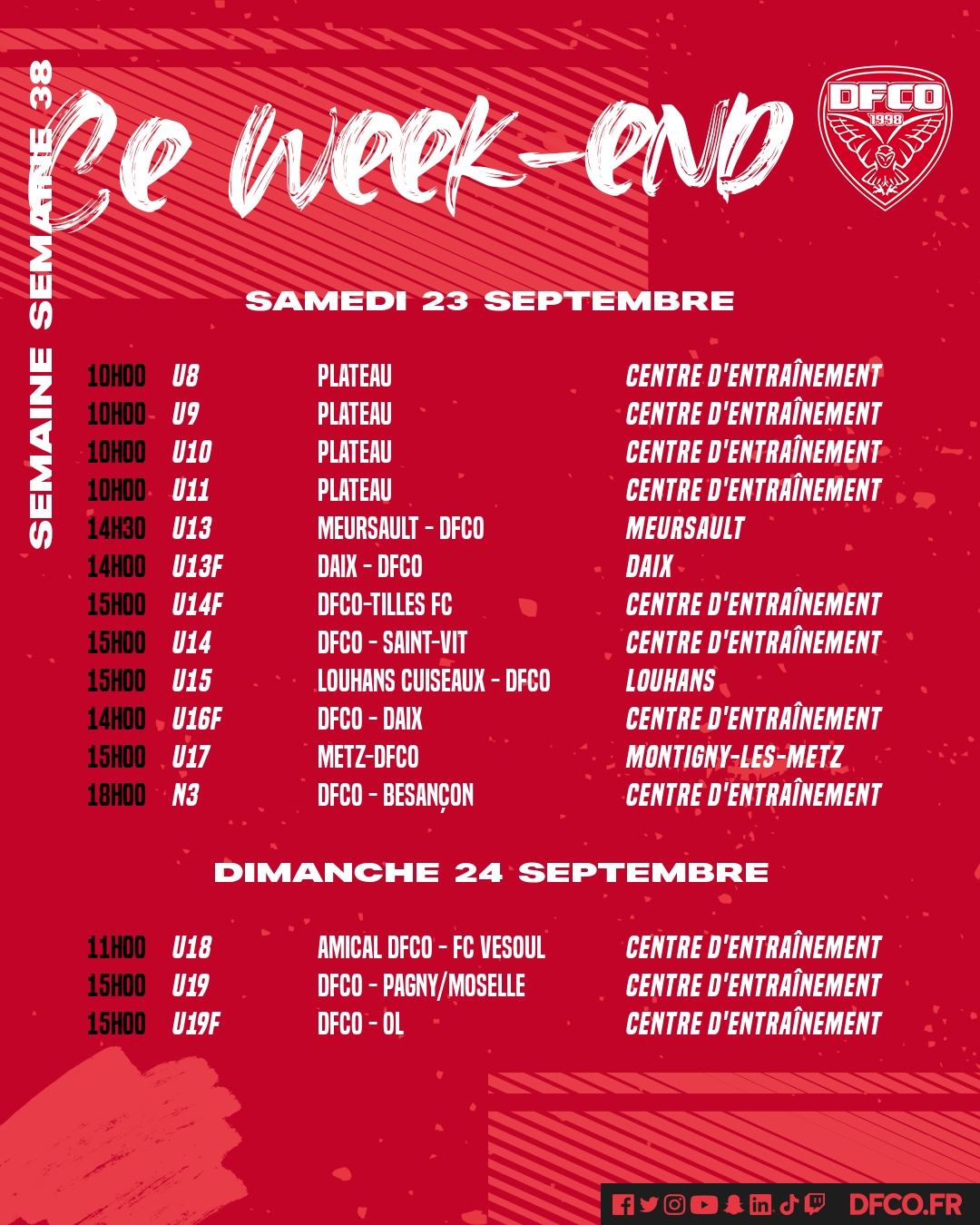 Retrouvez le planning des jeunes de la formation pour ce week-end du 23 et 24 septembre.