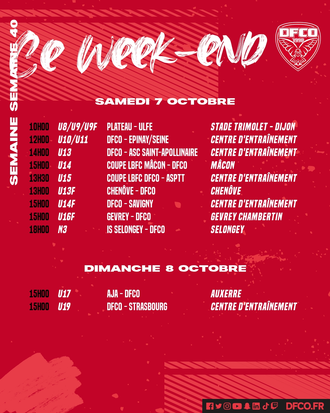 Retrouvez le planning des jeunes de la formation pour ce week-end du 7 et 8 octobre.