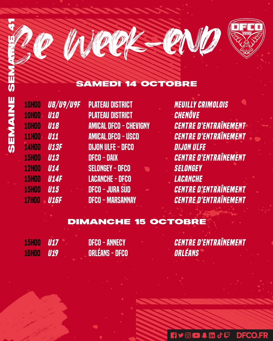 Retrouvez le planning des jeunes de la formation pour ce week-end du 14 et 15 octobre.