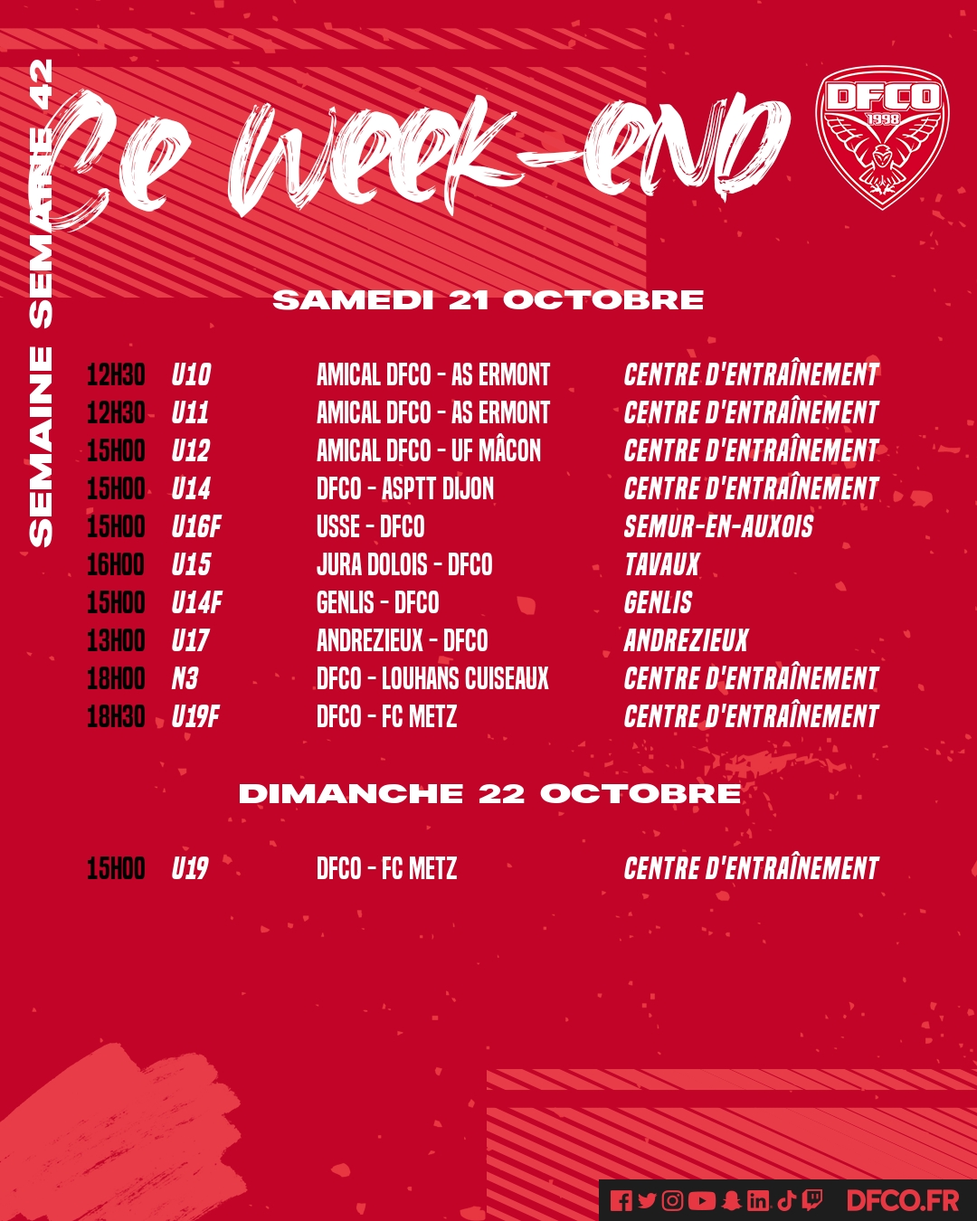A noter, du côté de la formation le déplacement à Andrezieux pour les U17 Nationaux samedi à 13h. Le même jour, la N3 recevra Louhans pour ce choc du haut de tableau à 18h. Les U19 Féminines seront opposées à Metz à 18h30 sur les terrains du centre d’entraînement.