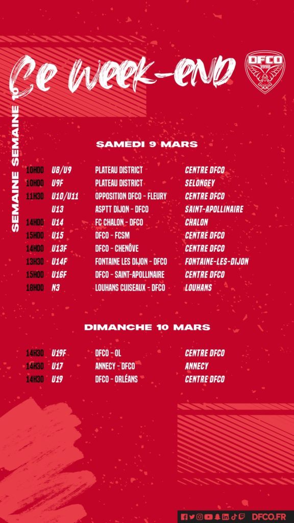 Côté formation, la N3 se déplace à Louhans samedi à 18h30. Dimanche, les U19 féminines reçoivent l’Olympique Lyonnais à 14h30. Dans le même temps, les U19 jouent contre Orléans au centre d’entraînement de Saint-Apollinaire. Les U17 seront en déplacement du côté d’Annecy.