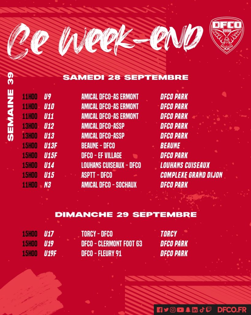 Retrouvez le planning des jeunes de la formation pour ce week-end du 28 et 29 septembre.