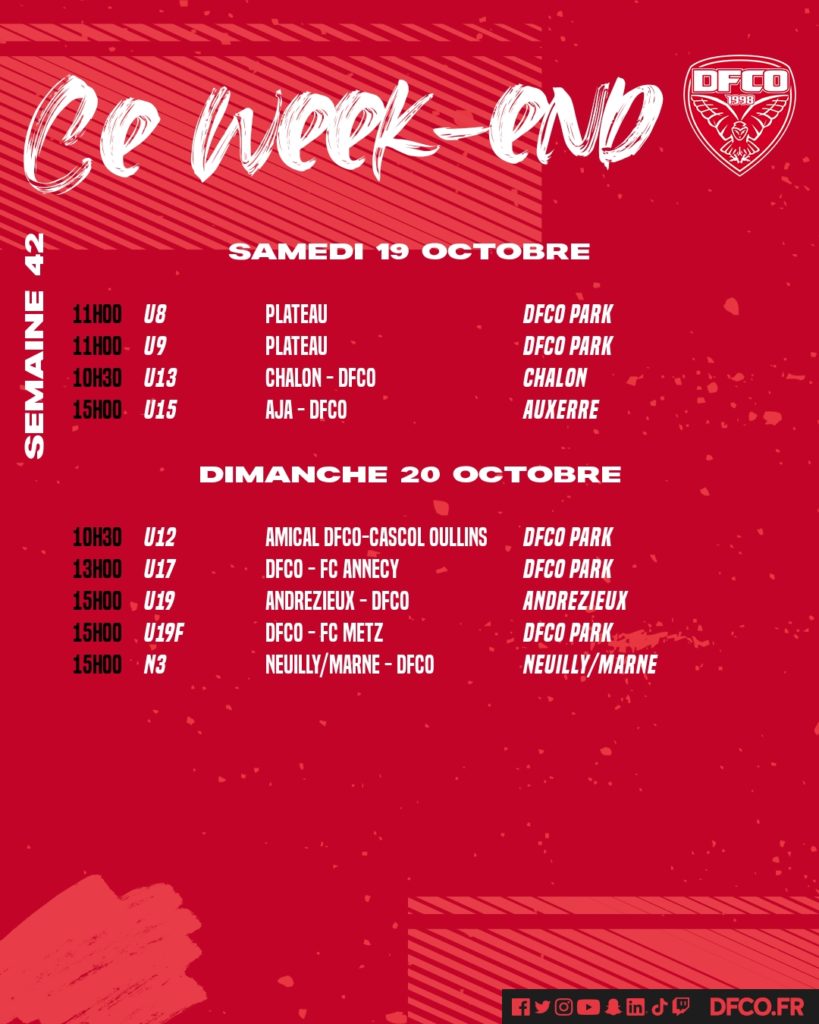 Retrouvez le planning des jeunes de la formation pour ce week-end du 19 et 20 octobre.