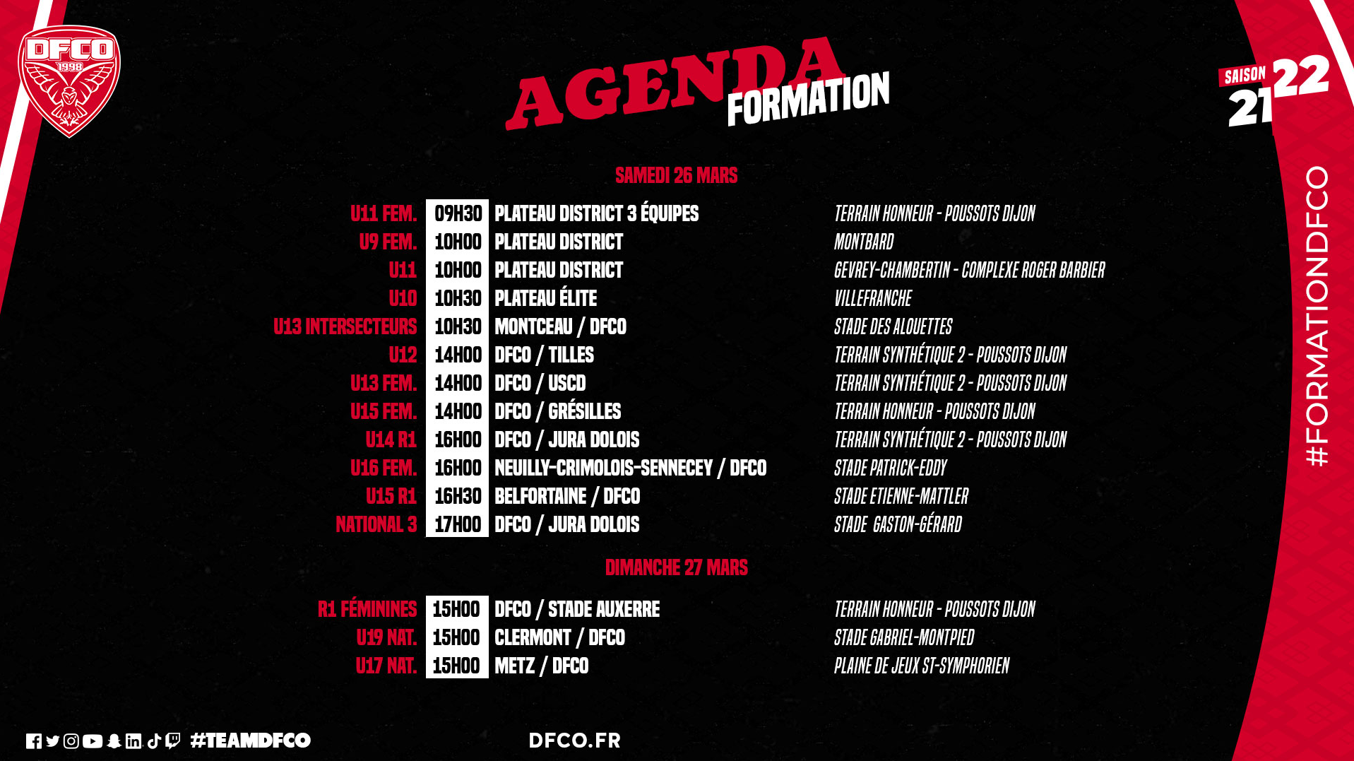 Retrouvez le planning des matchs du week-end pour nos équipes de jeunes.